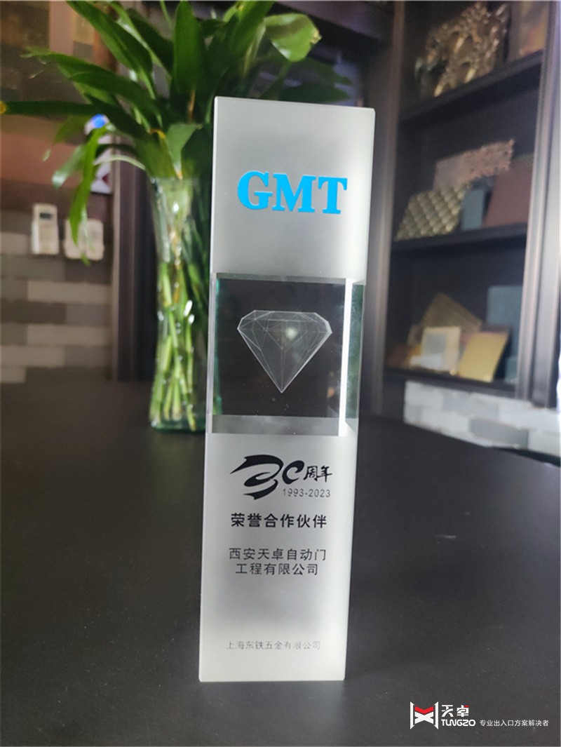 于2023年7月17日,西安天卓自動門的董事長卓天倫受邀參加了上海東鐵GMT30周年優(yōu)秀合作伙伴大會。西安天卓自動門是上海東鐵GMT的一級代理商,負(fù)責(zé)銷售GMT地彈簧、GMT閉門器、GMT自動門、GMT旋轉(zhuǎn)門以及其他小五金配件,例如合頁鉸鏈、拉手、貓眼和門檔。此次大會在陜西西安舉行,標(biāo)志著GMT對西北市場的高度重視。西安天卓自動門在此次大會上榮獲GMT30周年榮譽合作伙伴獎項,同時還有陜西儒藝工貿(mào)有限公司、成都XX等幾家公司獲得了次獎勵。除了頒獎典禮,GMT還推出了新款的地彈簧、閉門器和智能鎖。