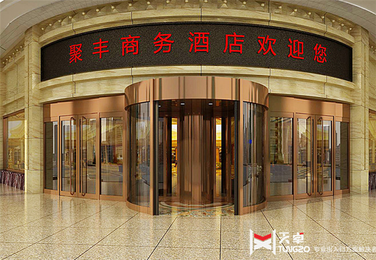 西安天卓牌環(huán)柱式三翼,四翼旋轉(zhuǎn)門,很好的解決了建筑物入口中心有承重結(jié)構(gòu)柱無法安裝旋轉(zhuǎn)門的難題。它將承重結(jié)構(gòu)柱包飾起來作為旋轉(zhuǎn)門的中心柱,門扉及展箱繞柱旋轉(zhuǎn),體現(xiàn)出豪華氣派的美感。環(huán)柱旋轉(zhuǎn)門外觀補(bǔ)素大方,運(yùn)行安全穩(wěn)定。能有效的隔斷內(nèi)外氣流、防風(fēng)、防塵、靜音、保持內(nèi)部溫度。